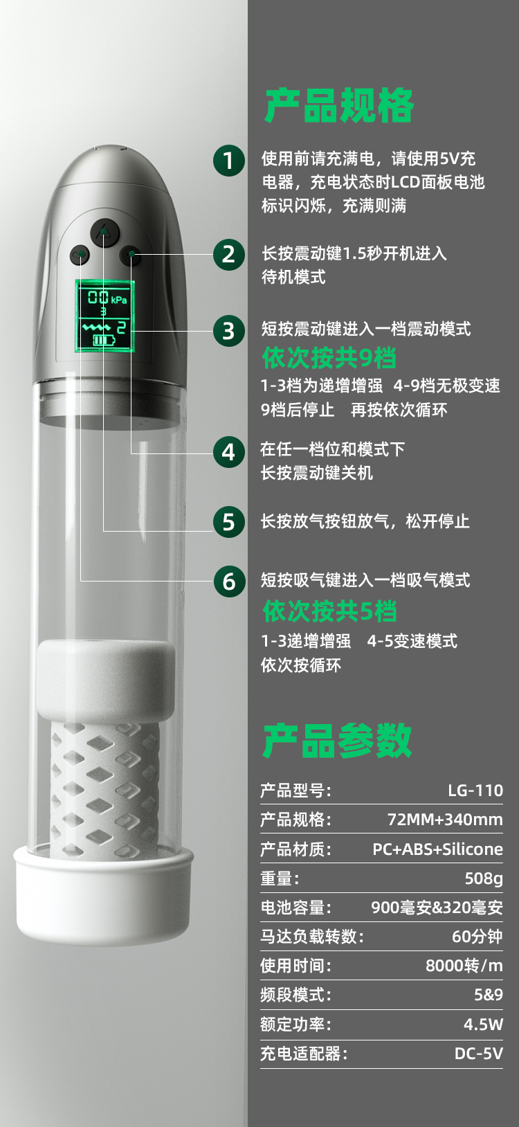 品名:LG-110 男用增大助勃(bó)器可更換內膽為(wéi)震動吸氣飛(fēi)機杯使用(雙概念)