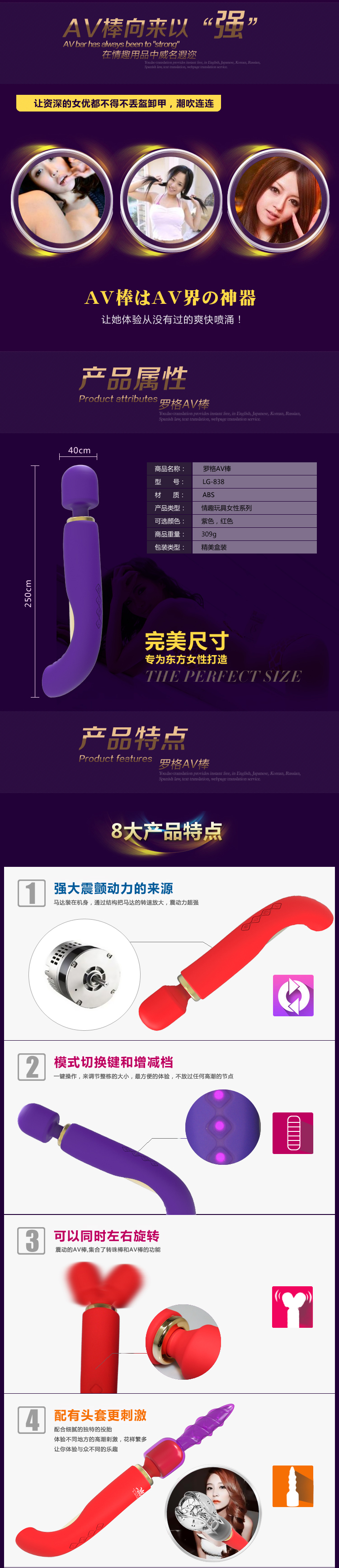 品名:LG-838液態包膠靜音360°旋轉震動棒轉珠棒